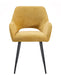 Der Stuhl ist mit einem hochwertigen Leinenstoff in tiefem Ockergelb bezogen, der ihm eine zeitlose und edle Ausstrahlung verleiht. Der Stoff fühlt sich angenehm weich an und sorgt gleichzeitig für eine warme, einladende Atmosphäre. Die Ockergelb Farbgebung fügt sich perfekt in einen modernen Wohnstil ein. Die sanft abgerundete Form der Rückenlehne und Armlehnen unterstreicht das elegante Erscheinungsbild und bietet zusätzlichen Komfort und Halt.