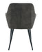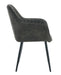 Het stevige metalen frame in zwart vormt een stijlvol contrast met de zachte bekleding en benadrukt het industriële karakter van de stoel. De slanke, licht uitlopende poten zorgen voor stabiliteit en een elegante uitstraling. Dankzij de geïntegreerde vloerbeschermers blijft je vloer optimaal beschermd.